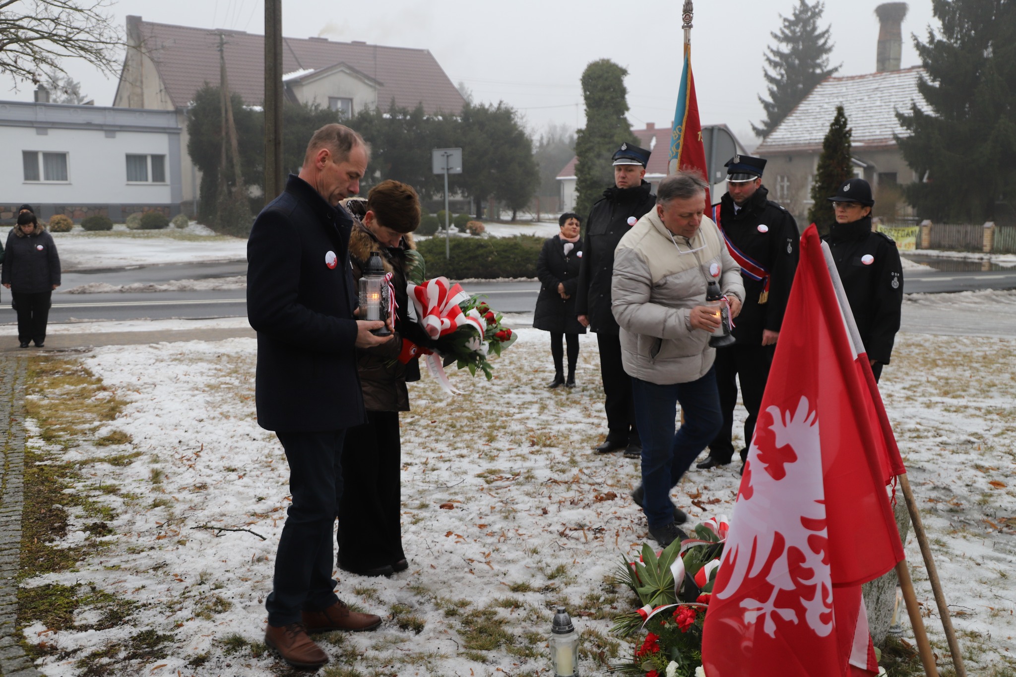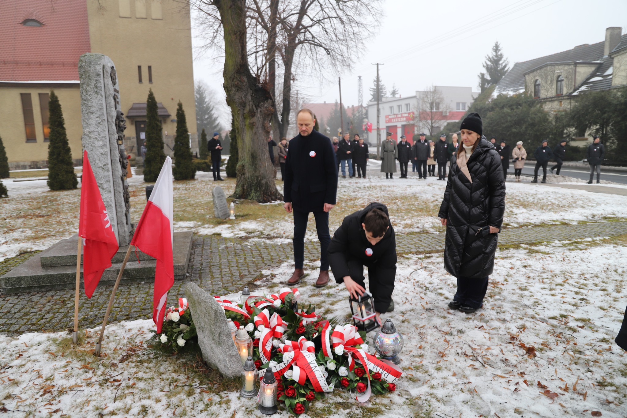 Kolejnym punktem programu było przejście na Plac Wolności, gdzie pod pomnikiem delegacja zapaliła światła pamięci. Symboliczne upamiętnienie w przestrzeni publicznej podkreśliło rangę rocznicy oraz jej znaczenie dla historii Kaszczoru i całej gminy Przemęt.