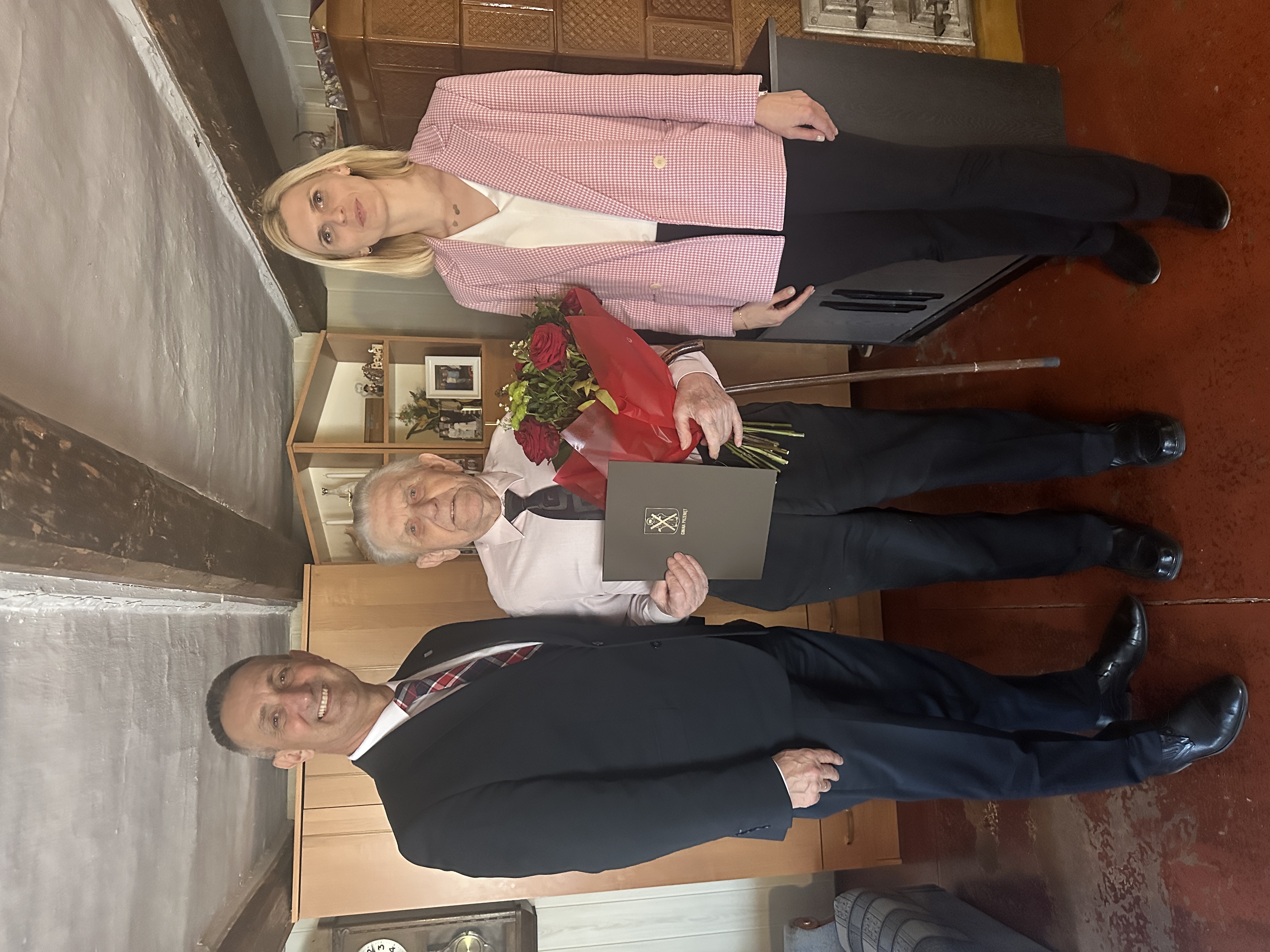 Jednym z Jubilatów był Pan Zygmunt Muszyński z Solca Nowego, który obchodził 99. urodziny. Podczas wizyty wójt przekazał Jubilatowi bukiet kwiatów oraz upominek, życząc przede wszystkim zdrowia, spokoju i wielu pogodnych dni w gronie najbliższych. Spotkanie było okazją do wspomnień oraz rozmowy o dawnych czasach. Pan Zygmunt znany jest ze swoich zainteresowań – chętnie rozwiązuje krzyżówki oraz czyta gazety, dzięki czemu pozostaje aktywny i ciekawy świata. Jubilat jest dumnym ojcem, dziadkiem i pradziadkiem, a liczne grono najbliższych stanowi dla niego ogromne wsparcie i powód do dumy.