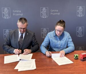 W Urzędzie Gminy Przemęt podpisano kolejną umowę na realizację inwestycji drogowej. Dokument zawarto 31 marca 2026 roku pomiędzy Gminą Przemęt, reprezentowaną przez wójta Janusza Frąckowiaka przy kontrasygnacie skarbnika Bożeny Ćwiklińskiej, a firmą BRUKARSTWO – HC Firma Usługowo-Handlowa Henryk Cieplik z Leszna.
